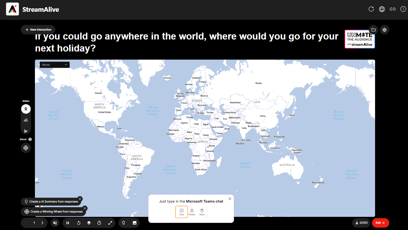 12. With this, you have successfully connected StreamAlive to your Microsoft Teams meeting or channel. When you have finished your interactive session, click on the "Exit" button at the bottom right within the StreamAlive Presentation LIVE Screen to disconnect.