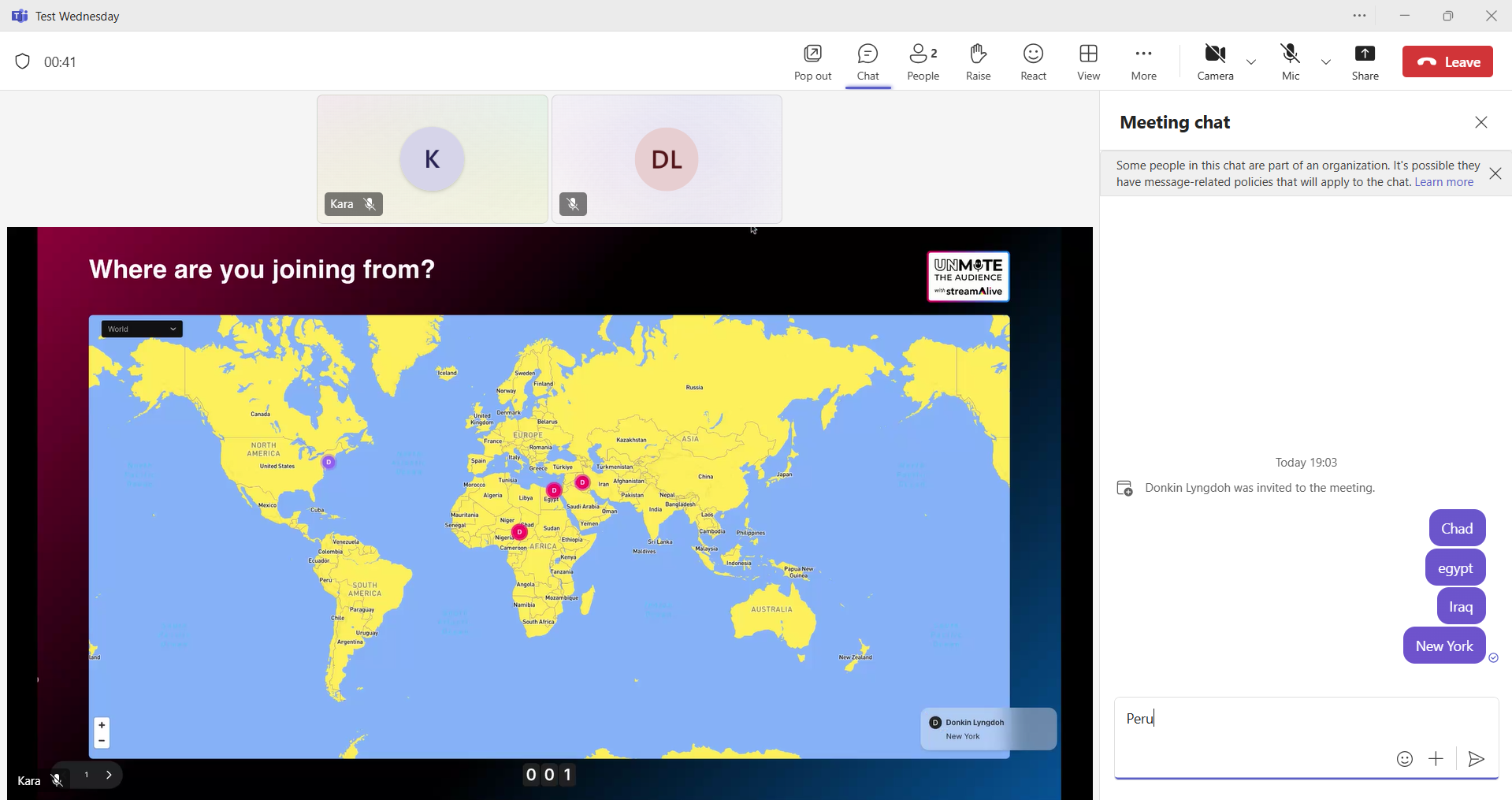 11. Ask your audience to type their answers in the Teams chat. When the interaction you created in your presentation is shown on the screen you can ask your audience to enter their answers in the Teams chat.